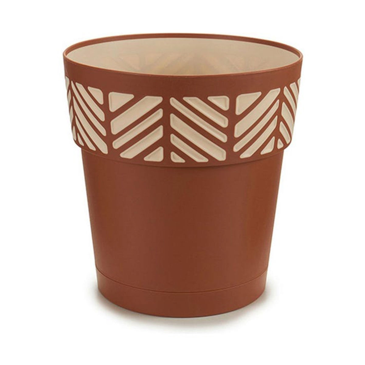 El macetero Orfeo es ideal para colocar tus plantas favoritas y darle un toque de lo más estético. Se trata de un macetero fabricado en PP con una forma en V. Tiene una capacidad de 7,5L y de 400ml de agua. En la parte superior vemos un diseño de líneas perpendiculares en direcciones opuestas que forman un estampado muy estético y llamativo. Es muy resistente al sol y en la parte inferior cuenta con un desagüe para evacuar el exceso de agua. ¡Dale a tus plantas lo mejor con este macetero Orfeo!