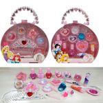 El maletín de belleza de las Princesas Disney contiene todo lo necesario para que luzcas con la magia de una auténtica princesa. Podrás arreglarte las uñas con alguno de los tres colores de que el set incluye. Además de varios anillos, para unas manos perfectas. El maletín también incluye una tiara y una peineta para lucir un peinado a la altura de alguna de las princesas que aparecen en los cuentos como Bella, Blancanieves, Aurora, Rapunzel, Cenicienta o Ariel. Además, el set incluye lápiz de labios, gloss, pintura de ojos en crema y colorete.