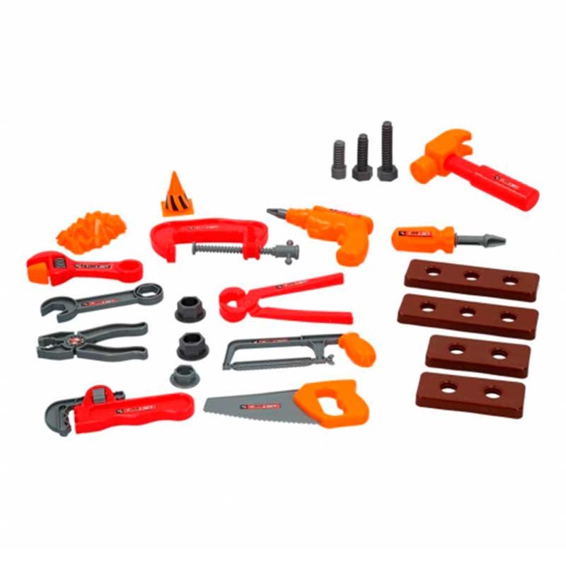 Tus hijos se convertirán en unos auténticos manitas con el maletín de herramientas My Tools de la marca CB Toys. Viene con 23 piezas de bricolaje entre las que se incluyen 3 tuercas, 3 tornillos, 1 llave inglesa, 1 llave fija, 1 sierra, 1 tenazas,1 alicates, 1 destornillador, 1 serrucho, 1 barrena, 1 sargento, 1 taladro, 1 martillo, 4 tableros, 1 señal y 1 mineral. El maletín viene con asa para facilitar su transporte de un lado a otro y la parte frontal es transparente para ver con facilidad el interior sin necesidad de abrirlo.
