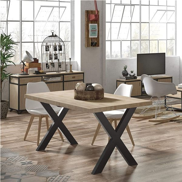 La Mesa de comedor fija modelo X-Loft tiene un tablero con terminado roble Nordish en tono claro natural, de mucha resistencia y con una apariencia muy refinada y veraniega. Esta mesa es ideal para usarse tanto en interiores como en exteriores, y no solo en la cocina, sino también salones e incluso en habitaciones como apoyo extra si el espacio disponible lo permite. Las patas están hechas de metal. Tienen una estructura en forma de "X” que las hace dar mayor soporte, y lucen muy vistosas. Limpiarla es muy fácil, ya que sus materiales son resistentes y sólo necesitarás un paño húmedo y listo. Su montaje es rápido y resulta sencillo con las indicaciones que se incluyen en el paquete.