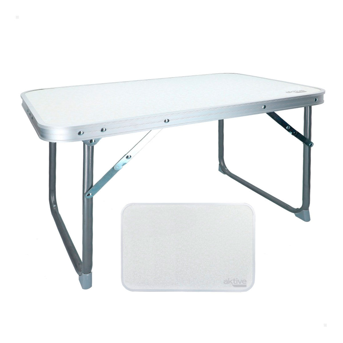 Siempre viene bien tener a mano una mesa baja plegable de camping como esta de Aktive. Tiene el tamaño perfecto para llevar siempre en el maletero para esas excursiones imprevistas donde poder sacar una mesa plegable y ponerla en cualquier sitio para disfrutar de un buen aperitivo al aire libre. Su estructura está fabricada con aluminio, mientras que el tablero está hecho con madera de MDF y superficie antideslizante. Incorpora un sistema de seguridad que fija las patas mientras están abiertas para mayor estabilidad. Sus bordes son redondeados e incluye unos tacos antivuelco. Se limpia muy fácilmente con un paño húmedo, y es muy fácil de plegar y desplegar. El complemento perfecto que estabas buscando, ¡consíguela ya a un precio irresistible!