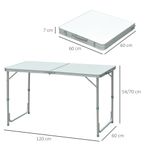 ¿Buscas una solución versátil para tus actividades al aire libre? Descubre la mesa plegable Outsunny, una pieza indispensable tanto en interiores como en exteriores. Desde reuniones familiares hasta barbacoas y pícnics, esta mesa multifuncional se adapta a cualquier ocasión con su diseño inteligente y funcionalidad excepcional. Conviértela en tu mesa auxiliar en el jardín, camping o playa. Su estructura plegable se transforma en una maleta con asa ligera, facilitando su transporte y almacenamiento. Podrás ajustar la altura de la mesa en dos posiciones y adaptarla a tus necesidades, proporcionando una comodidad óptima en cualquier situación. Construida con un robusto marco de aluminio anodizado y una encimera de MDF, esta mesa ofrece durabilidad y resistencia sin sacrificar la portabilidad. Su diseño plegable ahorra espacio de almacenamiento, mientras que las bisagras en las patas evitan plegarse accidentalmente, garantizando una experiencia segura y sin complicaciones. Los pies antideslizantes de goma proporcionan una estabilidad excepcional en una variedad de superficies, asegurando que tu mesa permanezca firme y nivelada en todo momento. Ya sea para una comida al aire libre con la familia o una reunión improvisada con amigos, la mesa plegable Outsunny está lista para cualquier ocasión, brindándote comodidad y conveniencia donde sea que vayas.