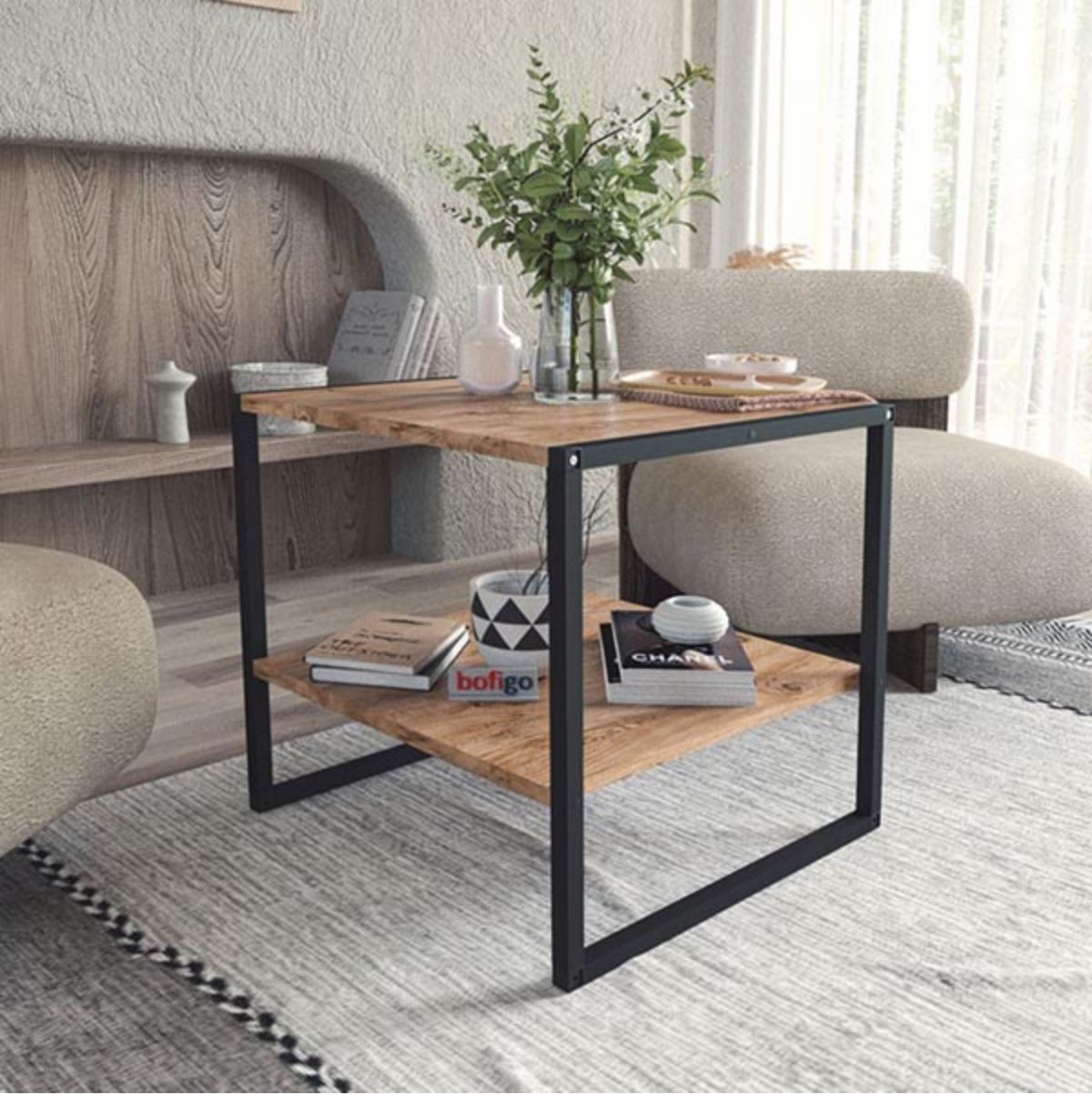 Fabricada en melamina con acabado en madera natural y estructura metálica en color negro, esta mesa destaca por su estética industrial, perfecta para aportar un toque moderno y actual al salón, comedor o incluso al dormitorio. Su diseño sobrio y elegante permite integrarla fácilmente en diferentes estilos de decoración, aportando personalidad sin recargar el ambiente. Ya sea como centro de reuniones o como soporte auxiliar, la mesa Delia es una opción funcional y con mucho estilo.