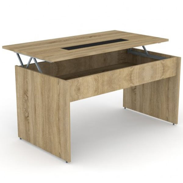 Al colocarse junto al sofá, la mesa de centro adquiere un valor añadido. Te permite disfrutar de la televisión a la hora de la comida o la cena, así como realizar tus tareas laborales desde el salón de casa. La mesa de centro elevable modelo Oca tiene un diseño original y es fácilmente combinable con el resto de sus muebles, gracias a su color cambria combinado con negro. Posee una tira de cristal en su tapa para darle un toque diferente, cristal que es de color negro. Fabricada con melamina de alta calidad es un producto excelente en la relación calidad-precio. Se presenta en formato KIT para facilitar el transporte.