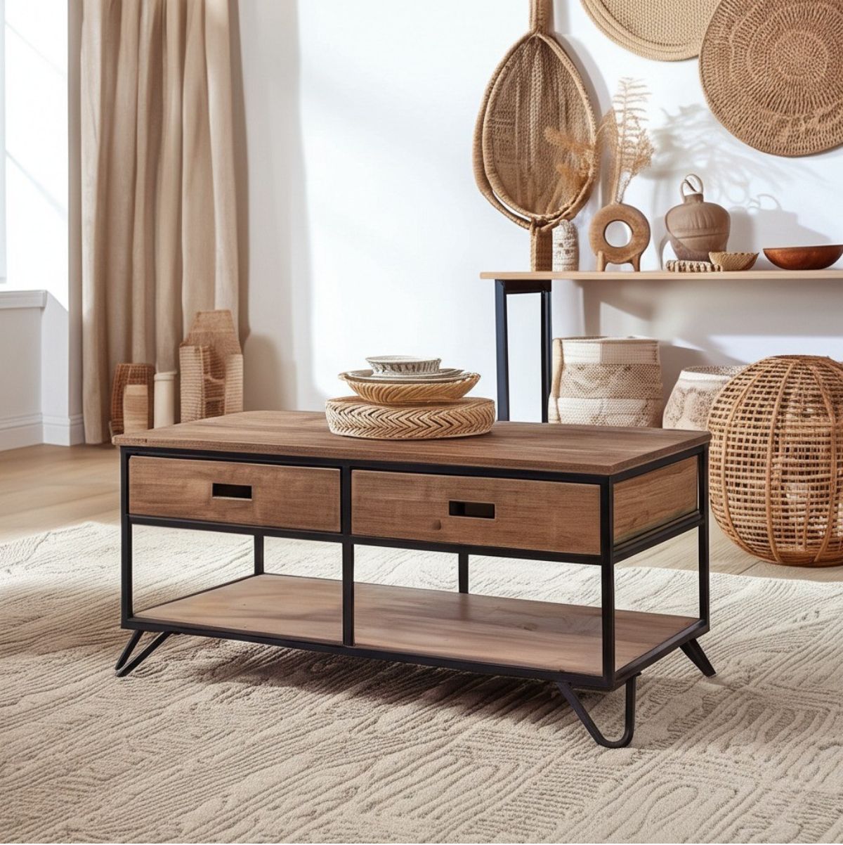 La mesa de centro modelo industrial tiene una estructura metálica de gran resistencia y grosor, que le da seguridad y soporte. El resto de sus componentes, es decir, el tablero, los cajones y la repisa inferior están hechos con madera de roble American en tono claro natural. Esta mesa funciona de maravilla como centro en un salón, pero también puede usarse en comedores, habitaciones, salas de espera o incluso en pasillos y similares. Los dos cajones que incluye pueden abrirse desde ambos lados de la mesa, brindando más versatilidad de uso. El estante inferior es muy amplio, mismo tamaño que el tablero, ambos muy resistentes. Limpiarla es muy fácil, ya que sus materiales son resistentes y sólo necesitarás un paño húmedo y listo. Su montaje es rápido y resulta sencillo con las indicaciones que se incluyen en el paquete. ¡Consíguela ahora a un precio de chollo!
