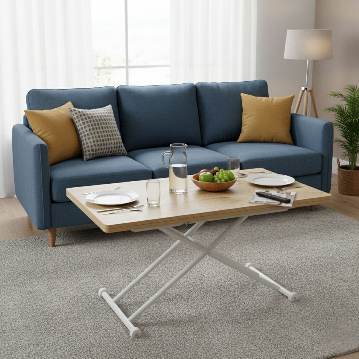 La mesa de centro Rubi es la combinación perfecta de funcionalidad y estilo. Su diseño elevable y extensible permite adaptar su tamaño según tus necesidades. Cerrada, luce como una elegante mesa baja de 36,5 cm de altura, ideal para acompañar tu sofá. Pero cuando la ocasión lo requiere, se transforma con facilidad: su tablero de madera natural se abre con un mecanismo extensible de tablas deslizantes, duplicando su superficie y alcanzando un ancho de 114 cm. Además, su altura se eleva hasta 74,5 cm, convirtiéndola en una mesa perfecta para comidas informales o reuniones. Su estructura robusta con patas blancas cruzadas no solo aporta estabilidad, sino que también refuerza el estilo moderno y acogedor del mueble. Además, las patas están diseñadas con refuerzos que evitan rayones en el suelo, protegiendo tu hogar. La mesa de centro Rubi es ideal para quienes buscan optimizar el espacio sin renunciar al diseño y la comodidad, ya sea en un salón pequeño o en un ambiente amplio donde la versatilidad es clave. Su sistema de extensión es práctico y fácil de usar, permitiéndote aprovechar al máximo cada centímetro de tu sala de estar.