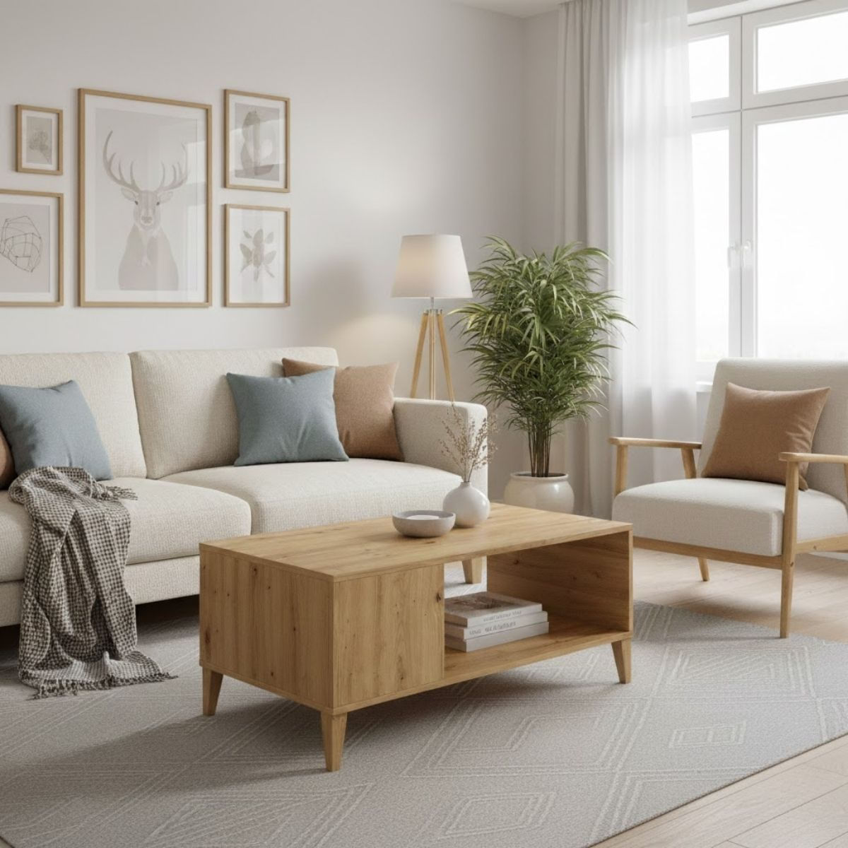 El acabado en color natural resalta la belleza de la madera y hace que la mesa se integre con distintos estilos de decoración, desde lo más clásico hasta lo contemporáneo. Sky no solo es práctica, sino que también se convierte en un punto focal del salón, uniendo estética y utilidad en un solo elemento. Cada detalle, desde los compartimentos hasta el estante inferior, ha sido pensado para ofrecer comodidad y orden, convirtiéndola en un mueble funcional que mejora tu día a día. Con la mesa Sky, tendrás un centro de reunión que combina almacenamiento, diseño y armonía en cualquier espacio de tu hogar.