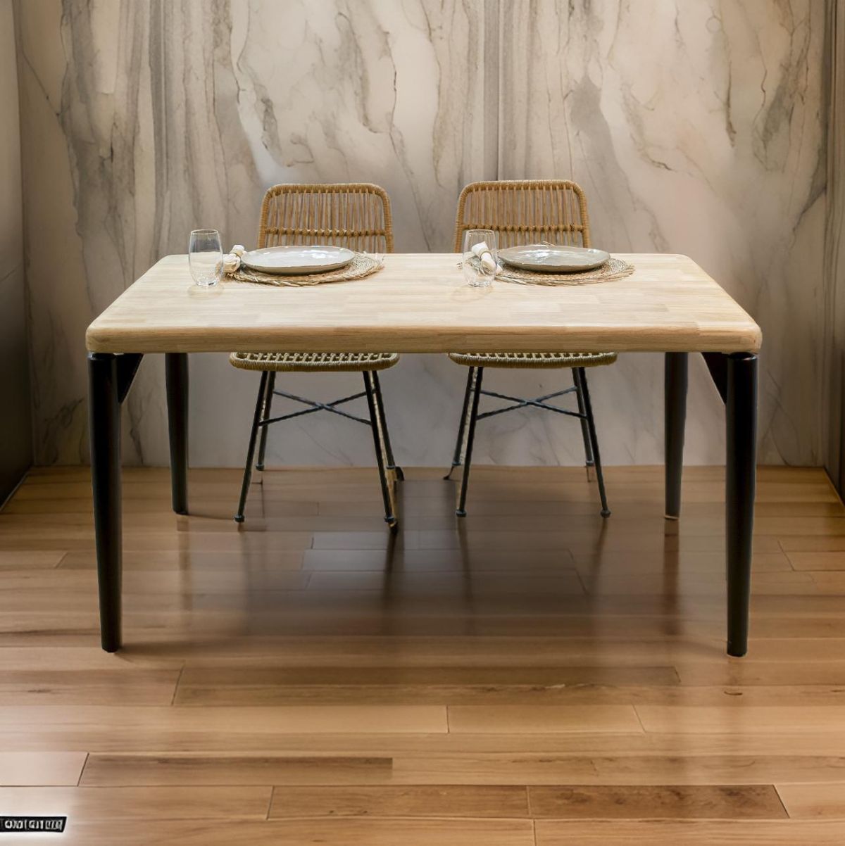 La mesa Moon de diseño fijo es una pieza moderna y funcional que se adapta perfectamente a cualquier ambiente, ya sea en el salón, comedor o incluso en una oficina. Con su diseño contemporáneo, combina líneas simples y una estética industrial, ideal para espacios que buscan un estilo limpio y elegante. El tablero en acabado roble aporta calidez gracias a su textura que simula la madera natural, mientras que las patas en negro metálico añaden un toque de contraste sofisticado, por lo que se adapta a diversos estilos decorativos, desde el escandinavo hasta el más moderno.