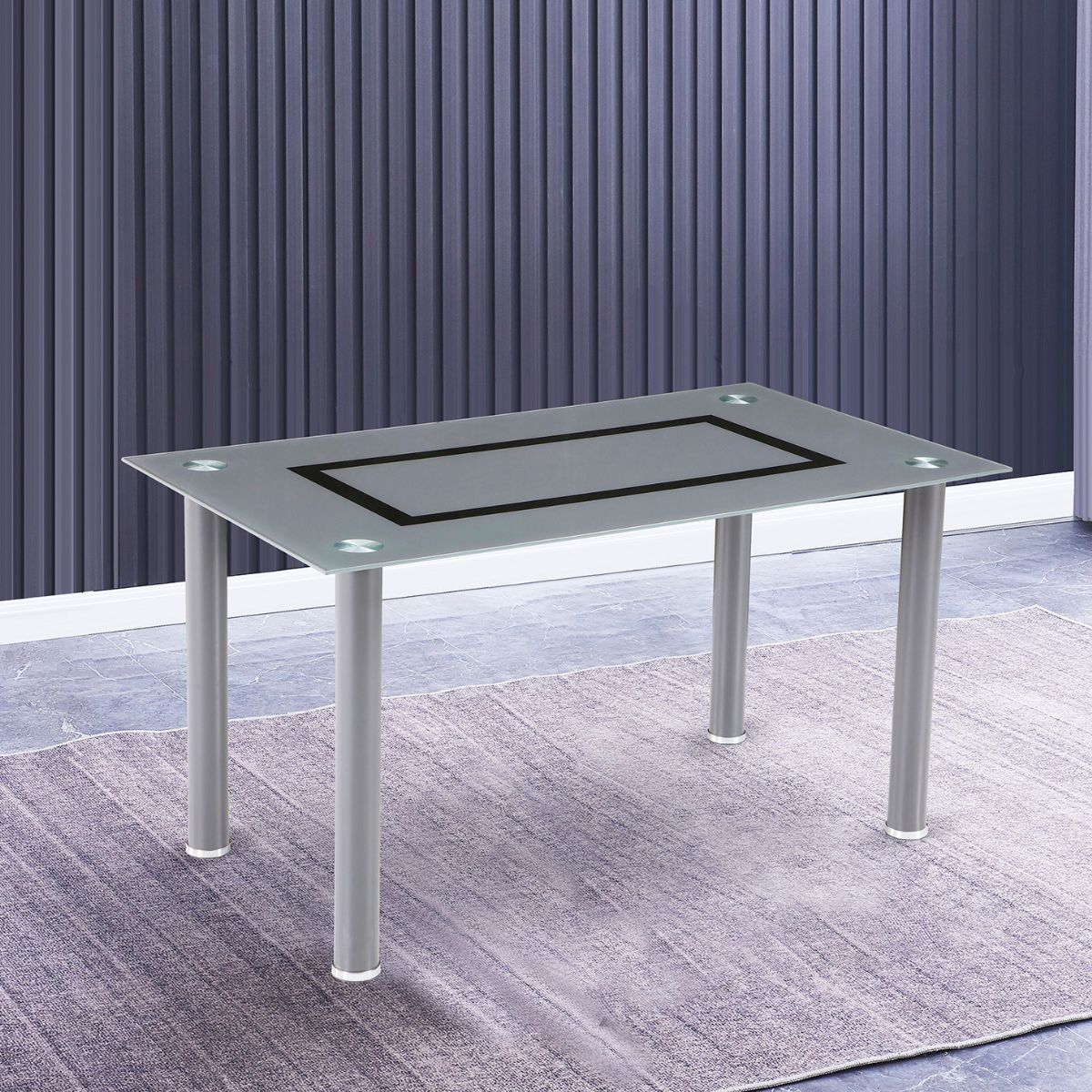 La mesa de cristal modelo Axiss es una elegante opción para tu comedor, combinando estilo moderno y funcionalidad. Con una altura de 76 cm, un ancho de 140 cm y una profundidad de 80 cm, ofrece el espacio ideal para reuniones y comidas familiares. Su diseño rectangular fijo presenta una tapa de cristal templado de 8 mm de grosor en color gris, con un distintivo rectángulo negro en el centro, añadiendo un toque de sofisticación a cualquier espacio. Las patas están fabricadas en tubo de acero pintado en color gris, lo que garantiza una estructura robusta y duradera, mientras que los herrajes metálicos aseguran estabilidad y resistencia en su uso diario.