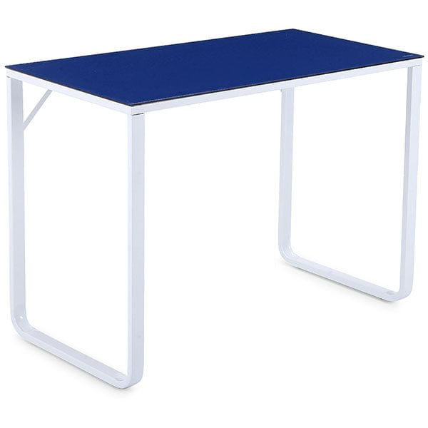 La mesa escritorio Marker es firme y sólida, incluye un tablero de cristal templado acabado en color azul, aportando un toque moderno y sofisticado. La mesa de estudio Marker tiene una gran estabilidad gracias a sus patas metálicas en forma de U de color Blanco. Mueble fácil y rápido de limpiar con un paño húmedo.