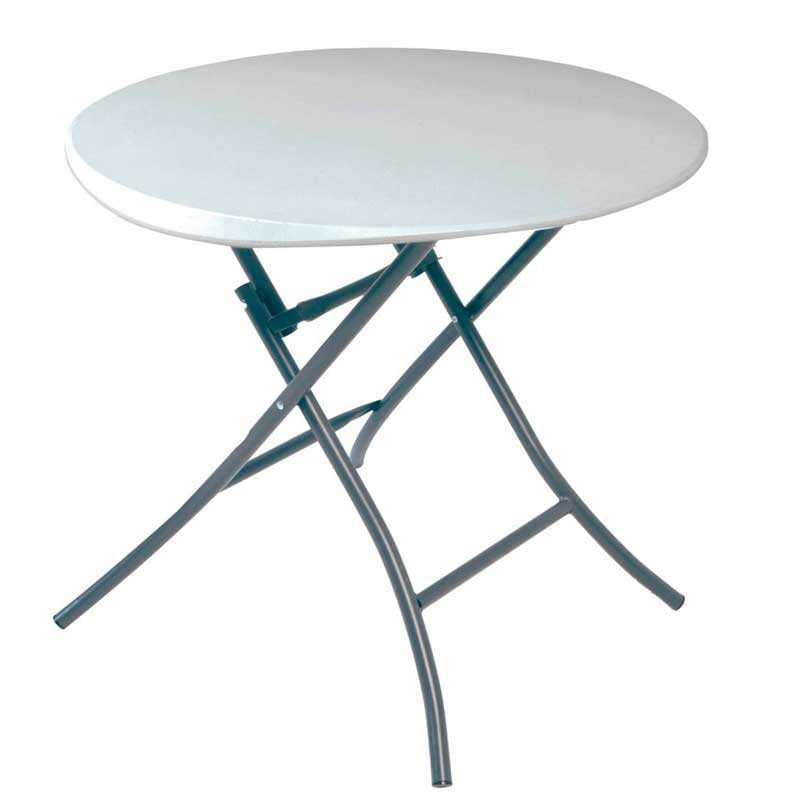 La mesa plegable redonda de la marca Lifetime es ideal para llevarla contigo campo, a la playa o cuando quieras comer al aire libre cómodamente. Está fabricada con superficie de polietileno de alta densidad ultrarresistente con protección UV y estructura de tubos de acero revestido con polvo antióxido. Las patas de la mesa se pliegan suavemente en un solo movimiento y el tablero es resistente a la suciedad y muy fácil de limpiar. Su tamaño es adecuado para 2/4 personas y soporta un peso máximo de 68kg.
