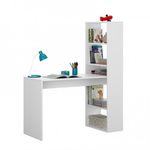 La mesa de escritorio con estantería Gio Plus es un completo set que incluye un escritorio y una estantería , a un precio que realmente cuesta de creer. La mesa y la estantería se montan unidas , y la estantería es reversible , o sea que puedes montarla a la derecha o a la izquierda de la mesa como mejor te convenga. La estantería lateral incluye 5 espacios de almacenaje diferenciados, para que tú o tus peques podáis almacenar facturas, clasificadores, libros, revistas, cómics, cajas o cajones, o incluso usarlas para objetos de decoración. Este mueble es ideal para que te montes la oficina en casa o para que los peques hagan los deberes en su habitación. El conjunto está elaborado en melamina de alta calidad con acabados en blanco Artik. El mueble sólo incluye la mesa y la estantería, no incluye la silla ni ningún otro objeto de decoración presente en la foto.
