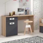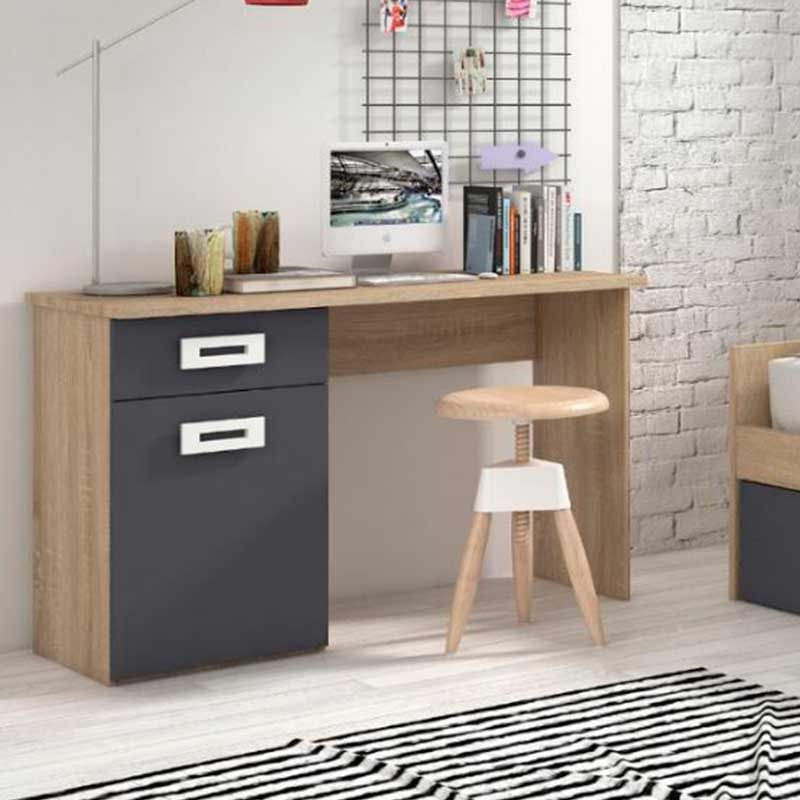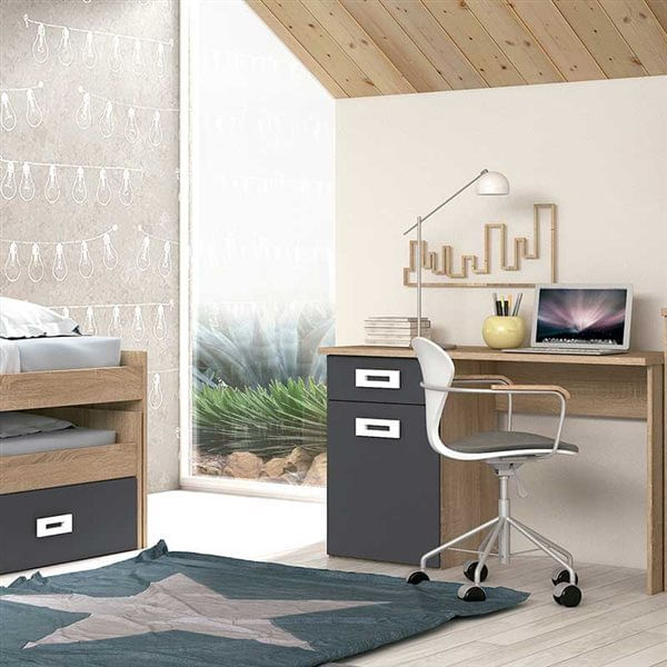 ¿Estás buscando una mesa de estudio o trabajo? ¿No tienes espacio para instalar tu ordenador? Te presentamos esta fantástica mesa de estudio modelo Trivial. Se compone de un cajón y un amplio armario que te permitirán mantener todo almacenado y organizado. Está realizada en melamina de alta calidad en color cambria y grafito. Sus tiradores están acabados en blanco, lo que hace que resalten dándole mucha personalidad a la mesa. Es un mueble muy práctico de estilo minimalista, robusto, con un tamaño muy ergonómico y cómodo para trabajar. Sirve para utilizar como mesa para el ordenador gracias a la amplia superficie del tablero y los espaciosos cajones permiten organizar tu escritorio y almacenar todo tipo de objetos. Aunque gracias a su versatilidad, también puede ser utilizado como mesa de ordenador, escritorio de oficina, escritorio de juegos, mesa de trabajo, mesa de estudio. Personaliza cualquier ambiente con este funcional escritorio. Sus medidas son 72x120x49.8 cm.