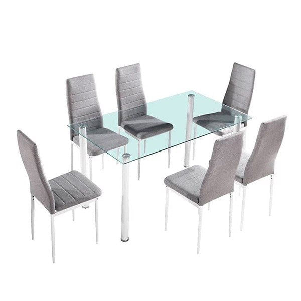 Presenta un diseño moderno, con una robusta estructura de metal cromada y cristal transparente, con patas en color blanco. Tiene 140 cm de longitud, es de diseño rectangular y ofrece una gran resistencia a los golpes y arañazos. Otra de sus bondades es que no tendrás problemas para eliminar los posibles restos de suciedad ya que al no ser una superficie porosa permite limpiarse muy fácilmente.