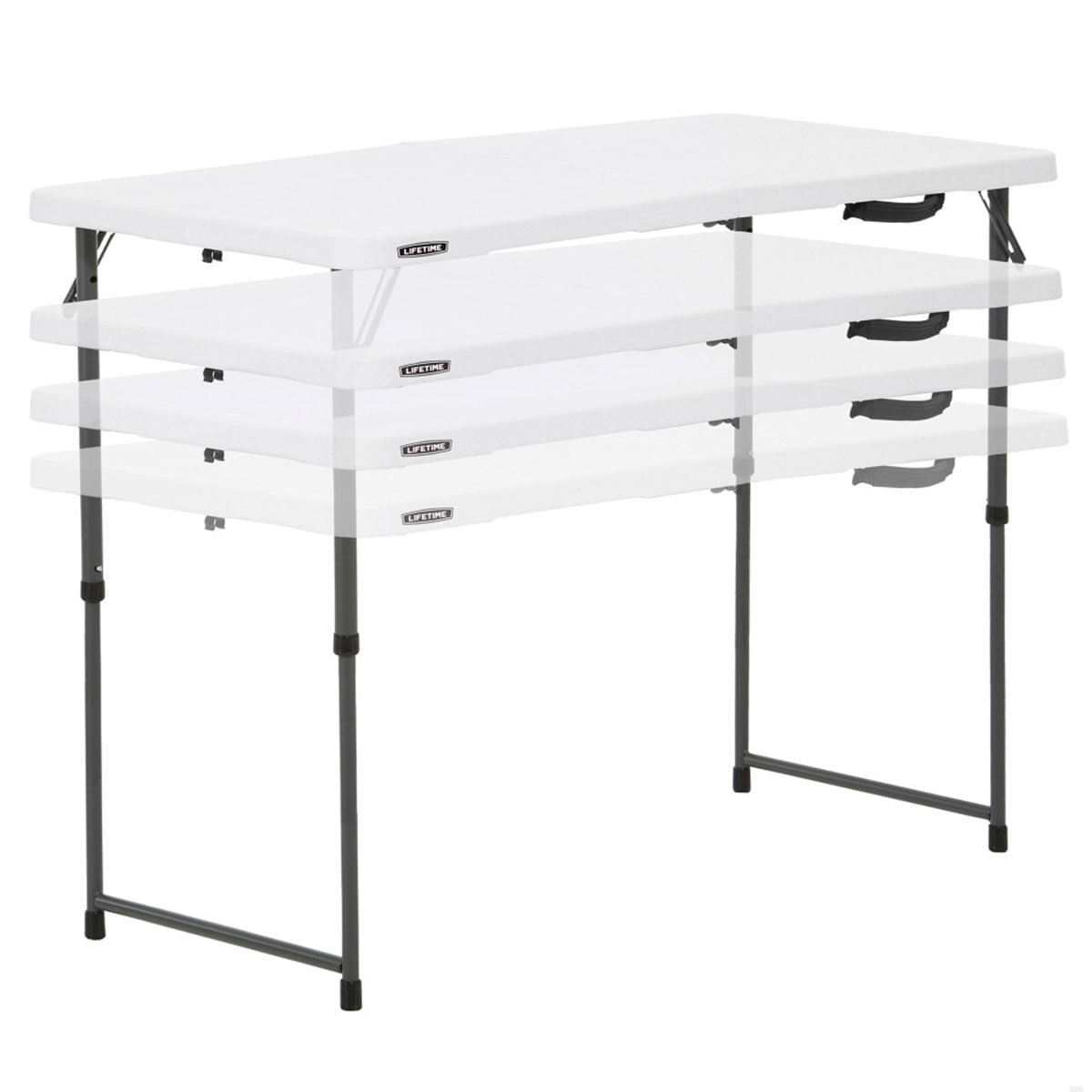 La mesa multiusos de la marca Lifetime te encantará por su gran polivalencia, ya que podrás usarla en el camping, como mesa auxiliar interior o exterior y como mesa para que tus hijos puedan hacer manualidades. Fabricada en polietileno de alta densidad y con una estructura de acero recubierto con pintura en polvo antióxido, esta mesa resistirá sin problema el paso del tiempo. Una de sus principales ventajas es su altura regulable con hasta 4 posiciones diferentes: 56, 61, 74 y 91 cm. En sus patas cuenta con un mecanismo de bloqueo para evitar que se puedan cerrar, dándole un extra de seguridad. Además, una vez que termines de utilizarla, podrás plegarla cómodamente y llevarla contigo gracias a su asa de transporte incorporada. De forma rectangular, esta mesa dispone de protección UV y soporta un peso total de 340kg. ¡No te pierdas esta fantástica mesa de Lifetime al mejor precio en Embargosalobestia!