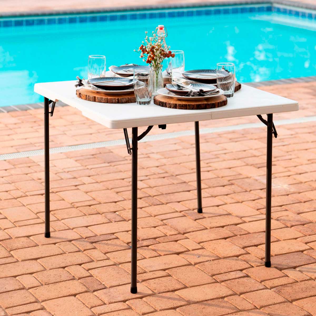 La mesa plegable de la marca Lifetime está indicada para ayudarte a organizar comidas en el jardín, camping, terraza o en el interior del hogar. Nos encontramos ante una mesa fabricada en polietileno de alta densidad de 38 mm y con una estructura de tubos de acero de 22 mm con revestimiento antióxido. Su forma es cuadrada y cuenta con una protección de UV, lo que la hace perfecta para exteriores. Además, podrás plegarla en segundos y llevarla contigo gracias a su asa de transporte. La mesa tiene una capacidad de 4 personas y cuenta con un sistema de anclaje en las patas para darle una mayor estabilidad y seguridad. Podrás usarla para una infinidad de acciones, desde comer hasta como soporte para cocinar o jugar a juegos de mesa. ¡No te pierdas esta fantástica mesa plegable de la marca Lifetime!