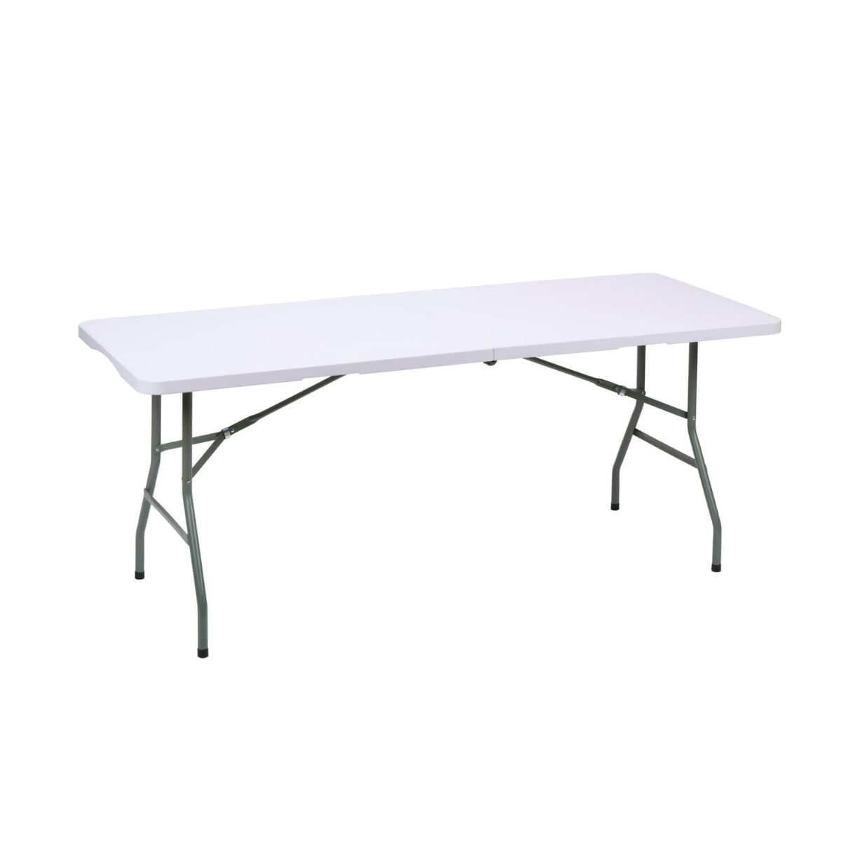 Mesa plegable para exterior fabricada en resistente polietileno (PE), ideal para reuniones, comidas al aire libre o eventos improvisados. Su diseño práctico permite plegarla por la mitad, reduciendo su tamaño para guardarla sin ocupar apenas espacio y facilitando su transporte gracias al asa integrada. Una vez cerrada, queda compacta y ligera, perfecta para llevar de un sitio a otro sin esfuerzo. Sus patas cuentan con almohadillas que protegen el suelo y evitan deslizamientos, ofreciendo mayor estabilidad en cualquier superficie. Además, incluye un seguro de cierre para que la mesa no se abra accidentalmente durante el transporte o almacenamiento, garantizando siempre un manejo cómodo y seguro.