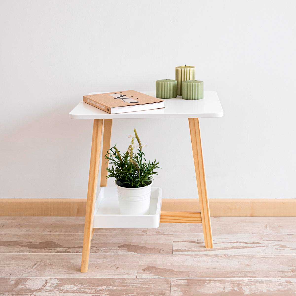 La mesa auxiliar MOA de Vinthera es una pieza esencial que aporta un toque nórdico y rústico a tu hogar. Con su diseño atemporal y versátil, la mesita auxiliar MOA se adapta a cualquier rincón de tu hogar. Fabricada en madera MDF con patas de madera de pino natural, esta mesa combina la resistencia con la elegancia. Su repisa superior cuadrada es perfecta para exhibir tus objetos favoritos, mientras que la bandeja inferior te ofrece espacio adicional para mantener tus pertenencias organizadas. El diseño nórdico de MOA irradia encanto escandinavo, y su aspecto rústico y atemporal le otorga una versatilidad que la hace combinable con cualquier estilo de decoración. Además, su construcción resistente garantiza su durabilidad en el tiempo. Con un montaje y un mantenimiento muy sencillos, este modelo MOA es todo lo que necesitas para renovar el aspecto de tu salón. ¡No te la pierdas!