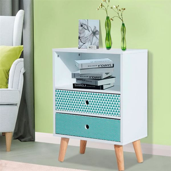 ¿Necesitas una cómoda moderna y original? Esta cajonera es perfecta como mesita de noche, armario bajo u organizador de almacenamiento. Los colores combinarán perfectamente con tu hogar. Ideal para el dormitorio, el salón, la sala de estudio y la oficina. Hecha con material de madera MDF, con muy buenos acabados. Es muy duradera, estable y fácil de limpiar. Cuenta con 4 patas de madera maciza, robustas y resistentes. El diseño es compacto y elegante, ocupa poco espacio y tiene 2 cajones y un estante grande en el que podrás guardar lo que desees. Debido a su estilo moderno, es muy decorativa. Tiene un diseño compacto y elegante, cuenta con 2 cajones y un estante grande en el que podrás guardar lo que desees.