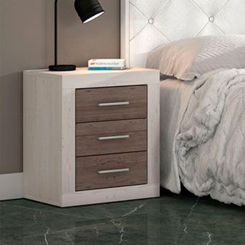 Contar con una mesita junto a la cama resulta algo imprescindible en cualquier dormitorio ya que se trata de un mobiliario muy práctico y funcional. El modelo Lara se adapta perfectamente a todas tus necesidades, al mismo tiempo que destaca por su sencillez y elegancia. Es un tipo de mueble fabricado en melamina de alta calidad, con tres amplios cajones lacados en blanco y tirador plateado. Su altura de 60 cm resulta ideal para tener todas las cosas accesibles de forma cómoda. Además, combina a la perfección con la mayoría de los muebles y textiles. Es de fácil limpieza ya que sólo necesita un paño humedecido en agua y jabón para acabar con cualquier tipo de suciedad.