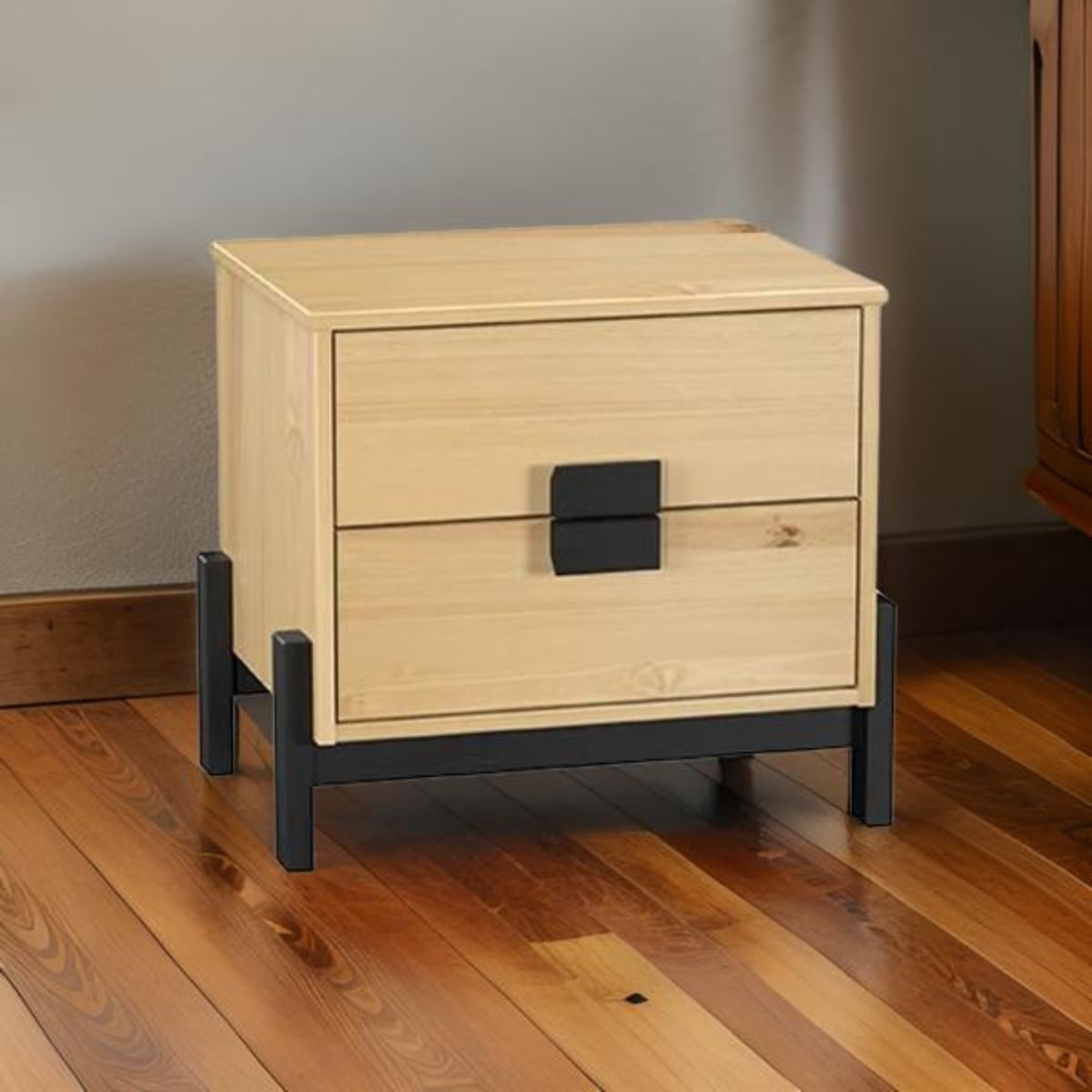 La mesita de noche Macarena es una pieza funcional y estilosa que encaja perfectamente en cualquier dormitorio moderno. Fabricada en madera de pino, su estructura destaca por su resistencia y durabilidad, aportando un toque cálido y natural al espacio. Su diseño de líneas rectas y estilo contemporáneo se complementa con patas y tiradores en color negro, creando un contraste elegante y sofisticado. Equipada con dos cajones espaciosos, esta mesita ofrece un almacenamiento práctico para organizar libros, accesorios o cualquier objeto personal que necesites tener a mano. Su superficie superior es ideal para colocar una lámpara, el despertador o elementos decorativos. Además, su acabado permite una limpieza fácil y rápida con un paño húmedo, manteniéndola siempre impecable. Con unas medidas de alto 48 cm, ancho 54 cm y profundidad 40 cm, la mesita Macarena es compacta pero funcional, perfecta para aprovechar el espacio sin renunciar al diseño. Su combinación de madera de pino y detalles en negro la convierte en una opción versátil que se adapta tanto a ambientes modernos como a estilos industriales o escandinavos. Si buscas una mesita con carácter, almacenamiento y fácil mantenimiento, la Macarena es una excelente elección.