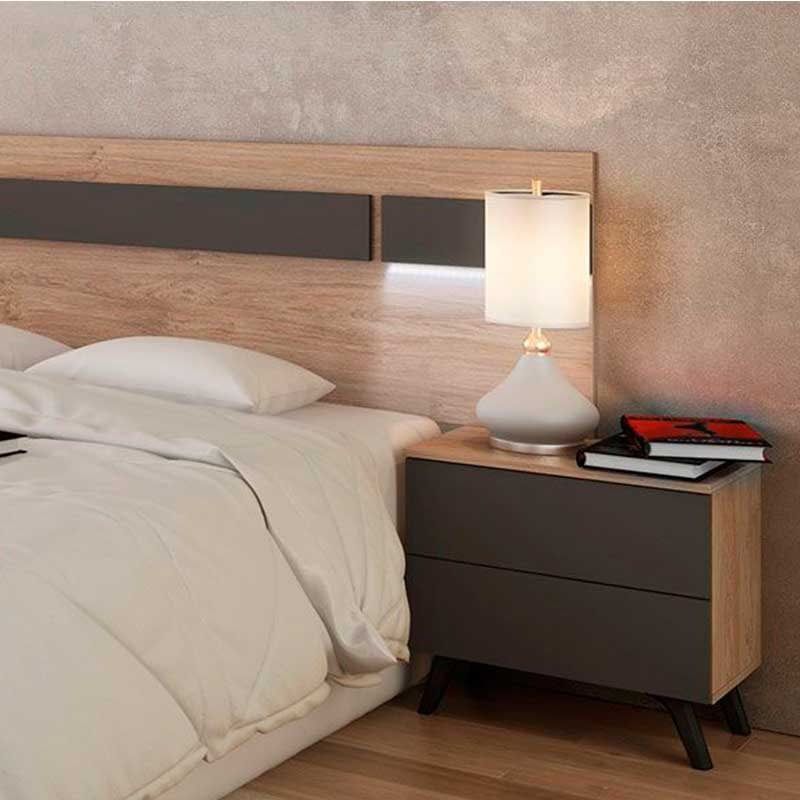 La mesita de noche modelo Soto cuenta con 2 cajones con frontales contrastados y sin tiradores de estilo nórdico e industrial. Es ideal para dormitorios de matrimonio o individuales que necesitan espacio de almacenaje adicional cerca de la cama, podrás guardar ropa interior, tus gafas o incluso el libro que estés leyendo en el momento. Al estar elaborada en melamina, un material sintético no poroso que previene el desarrollo de parásitos y bacterias, proporciona un entorno muy higiénico y seguro para tus pertenencias personales. Además, resulta facilísima de limpiar con un simple trapo húmedo. Y no solo eso, gracias a sus patas nórdicas ligeramente elevadas, podrás limpiar debajo del mueble sin moverlo del sitio, evitando así posibles desperfectos en el suelo.