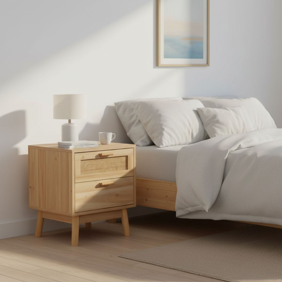 La mesita de noche Trend es la combinación perfecta de belleza y funcionalidad para tu dormitorio. Fabricada con papel laminado y patas de madera, esta pieza de mobiliario es claro ejemplo de durabilidad y estilo atemporal. Con 2 cajones espaciosos y 1 repisa superior, la mesita de noche Trend ofrece un amplio espacio de almacenamiento para tus objetos esenciales de noche, desde libros hasta ropa interior y mucho más. El diseño rústico de esta mesita de noche agrega un toque de encanto a tu espacio, mientras que el cajón superior con frente en ratán decorativo añade un elemento de elegancia y sofisticación. La mesita de noche Trend es resistente y duradera, lo que garantiza que te acompañará durante años. Su fácil limpieza hace que el mantenimiento sea sencillo y sin complicaciones. Montarla es una tarea fácil y rápida. Estilo, funcionalidad y resistencia se funden en un diseño atemporal. ¡Consigue la mesita de noche Trend al mejor precio en Embargosalobestia!