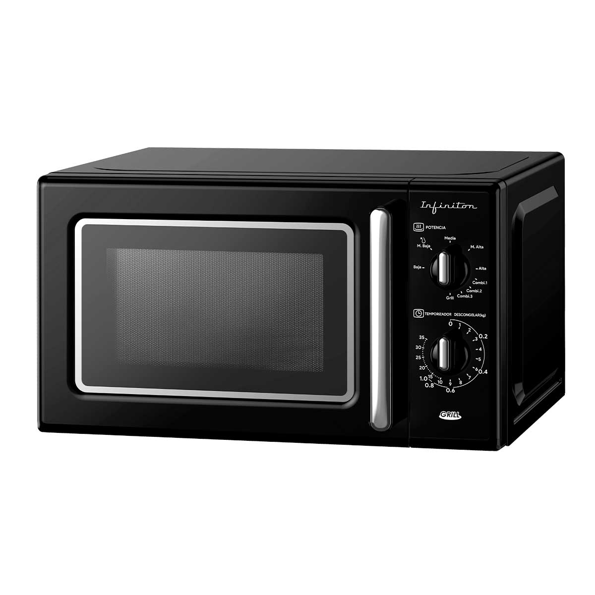 El microondas MW-RT20B/MW-RC21 de Infiniton es un electrodoméstico que combina un diseño vintage con una gran potencia y una generosa capacidad. Con sus 700 W de potencia, podrás calentar tus alimentos de forma rápida y uniforme. El MW-RT20B/MW-RC21 cuenta con un panel de mandos giratorio con 9 opciones de cocción. Además, el MW-RT20B/MW-RC21 cuenta con una función grill de 1000W, que te permitirá gratinar tus platos y darles un toque crujiente. También incluye un modo de descongelación por peso, para que puedas descongelar tus alimentos de forma sencilla y eficiente. El microondas MW-RT20B/MW-RC21 cuenta con un diseño vintage que combina a la perfección con cualquier cocina. Su puerta de cristal transparente te permite ver tus alimentos mientras se cocinan, y su iluminación interior te ayuda a ver mejor el interior del microondas. Además, su panel de mandos mecánico es fácil de usar y te permite controlar el microondas de forma sencilla. El MW-RT20B/MW-RC21 incluye un plato giratorio de 25,5 cm, que te permite calentar tus alimentos de forma uniforme. También incluye una parrilla circular, ¡ideal para utilizar la función grill! ¡Confía en un microondas de calidad como es este modelo de Infiniton!