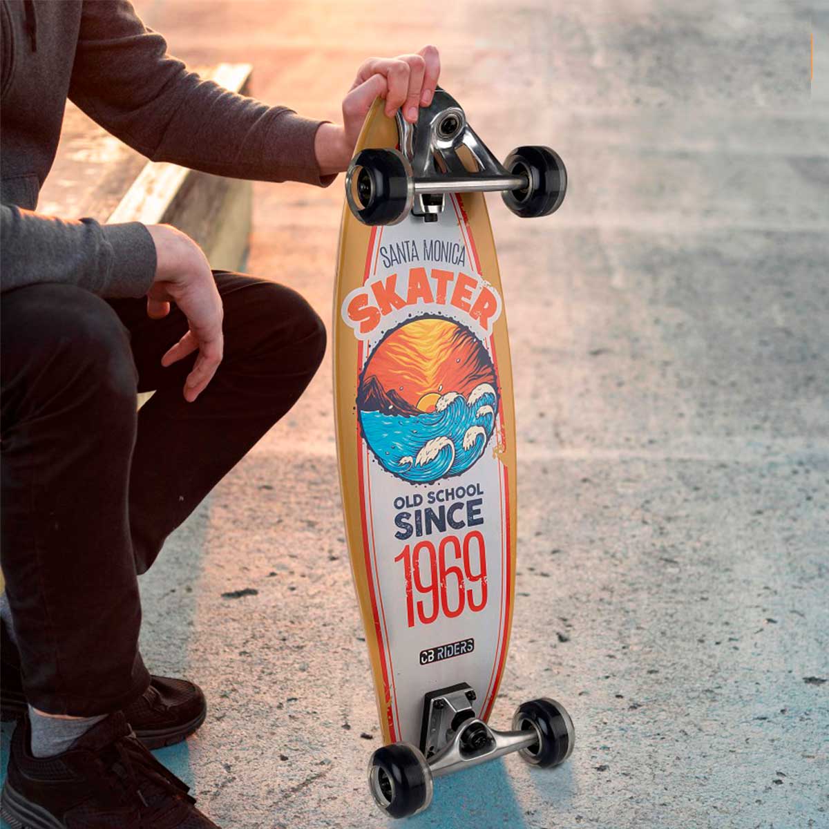El monopatín CB Riders, en elegante color negro, es una opción perfecta para los amantes del skate. Con un diseño surfero en su parte posterior, añade un toque de estilo y personalidad a tus momentos de patinaje junto a tus amigos. Equipado con cuatro ruedas de poliuretano de alta calidad, este monopatín proporciona un deslizamiento suave y estable en cualquier terreno. Su superficie de lija antideslizante te permitirá aprender nuevos trucos y movimientos en la pista evitando caídas innecesarias. Además, su resistente construcción permite soportar hasta 100 kg de peso máximo, garantizando la seguridad y confianza durante tus sesiones de patinaje. Domina las calles con este monopatín que combina funcionalidad, estilo y durabilidad en un único paquete. ¡Prepárate para deslizarte con estilo y disfrutar de la libertad sobre ruedas con el monopatín de CB Riders!