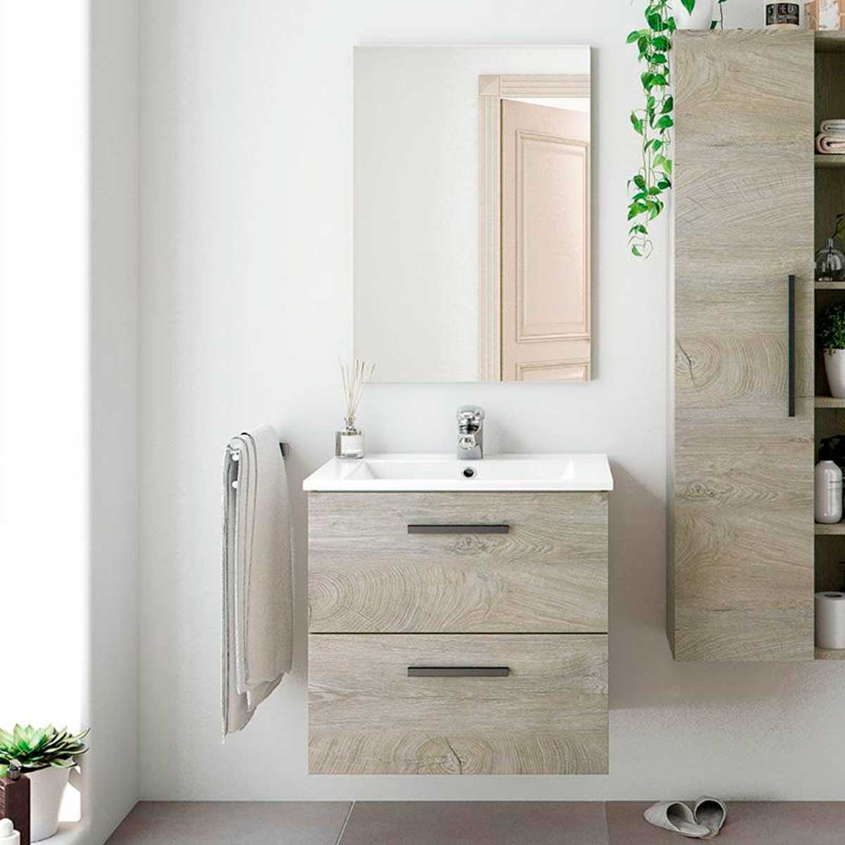 ¿Necesitas renovar tu mueble de baño y cuentas con un espacio limitado? No te preocupes porque el mueble de baño modelo Athena de 60 cm es perfecto para espacios limitados. Cuenta con 2 cajones, lavabo y un espejo. El mueble está fabricado con tablero de partículas de melamina, y cuenta con cajón superior salva-sifón, guías ocultas con cierre progresivo mediante sistema Soft Close y tiradores y patas de aluminio lacados en negro mate. Sus amplios cajones te permitirán guardar y organizar todos tus productos de higiene y belleza. Gracias a la sencillez de su diseño, combinará a la perfección en cualquier baño y con cualquier estilo de decoración, y te permitirá ponerle las patas o bien, colgarlo en la pared. La grifería, la válvula y el sifón NO van incluidos. ¡No lo pienses más y dale un toque elegante a tu baño con el modelo Athena de 60 cm a un precio bestial!