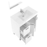 Este mueble de baño modelo Aktiva nunca pasará de moda gracias a su diseño elegante y combinable. Está compuesto por dos puertas con 2 estantes y un espacioso interior para poder guardar gran variedad de cosas como por ejemplo toallas o productos de baño. Cuenta también con dos cajones de gran capacidad, el lavabo de diseño moderno y el amplio espejo, proporcionan un set ideal para baños con estilo. Este lavabo está fabricado en PMMA (Polimelmetacrilato) de alta calidad. Cuenta con tiradores metálicos alargados en forma rectangular. Las patas están fabricadas en acero inoxidable y las guías del cajón son de metal de alta calidad. ¡El mueble perfecto para tu baño a un precio impresionante!