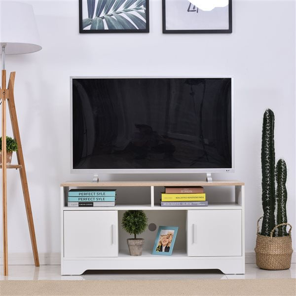 Ya sea como mueble auxiliar en cualquier estancia o como centro multimedia, este mueble para televisor de Homcom te ayudará en la organización y decoración de tu casa. Utiliza su superficie para poner la televisión y sus compartimentos abiertos para otros aparatos multimedia. En sus cajones coloca mandos a distancia, juegos de cartas, pilas… o todo aquello que necesitas en el salón pero no lo quieres a la vista de todo el mundo. Si lo prefieres también podrás utilizarlo como auxiliar para colocar juguetes ¡o para lo que se te ocurra!, porque es un mueble para televisor realmente multifuncional que te ayudará a mantener tu casa siempre limpia y en orden.