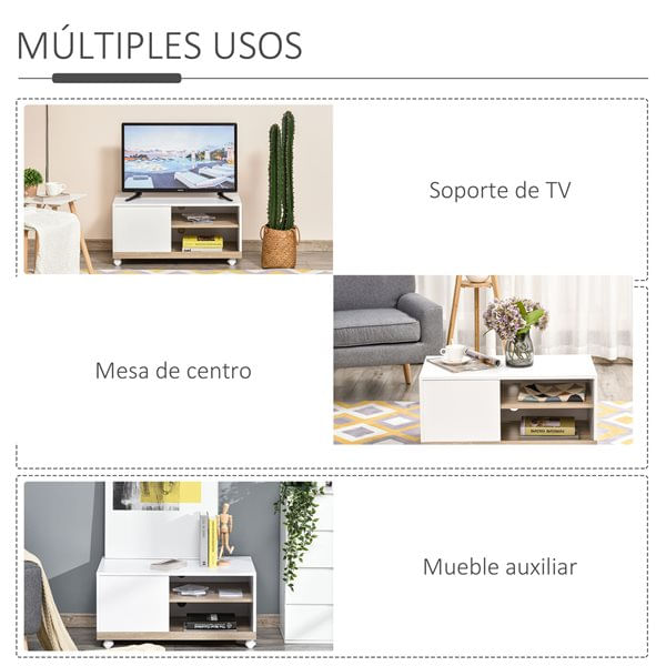 Mueble para TV Homcom con ruedas multifuncional blanco/madera 39,5x80x45 cm