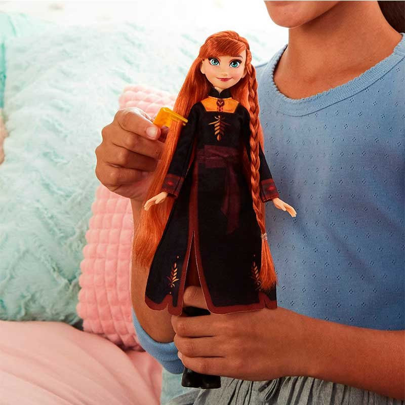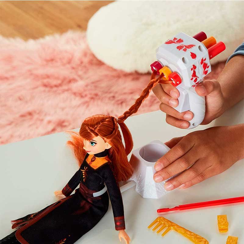 Llega uno de los personajes favoritos de Frozen, Anna, con un vestido negro muy elegante y con bonitos detalles rojos y naranjas. Tiene el pelo extra largo también en color rojo, con la que tu peque se divertirá haciéndole divertidas trenzas. Incluye una herramienta mecánica de trenzado manual muy fácil de usar: sólo tiene que insertar el gancho en la trenzadora y colocar un mechón de pelo en el gancho. Al tirar, saldrá por el otro extremo para luego levantar el trenzado de la base y pulsar el botón repetidamente para trenzar. Podrá repetirlo tantas veces como quiera hasta conseguir el peinado que más le guste.