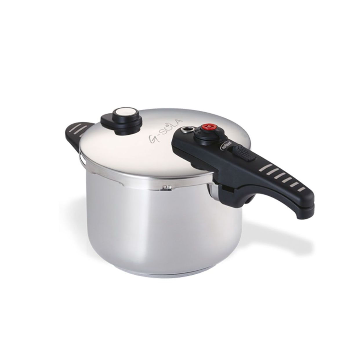 Olla a presión modelo G-sola de Inoxibar con capacidad de 6L, diseñada para quienes buscan rapidez, seguridad y durabilidad en la cocina. Fabricada en acero inoxidable de alta calidad, cuenta con un acabado pulido espejo que le da un look profesional y facilita su limpieza, además de un marcaje interior grabado para controlar la capacidad y el nivel de cocción de forma precisa. Incorpora visualizador de los niveles de cocción mediante anillas de colores y ofrece dos modos de cocción, rápida y súper rápida, adaptándose a tus recetas y necesidades diarias. Su cierre es fácil y seguro, y el mango ergonómico permite abrirla y cerrarla sin esfuerzo, mientras que el triple sistema de seguridad garantiza tranquilidad total durante su uso. Apta para todo tipo de cocinas y para lavavajillas, combina practicidad, eficiencia y diseño elegante en un solo utensilio, convirtiéndose en un imprescindible para agilizar tus preparaciones sin renunciar a la seguridad ni al estilo.