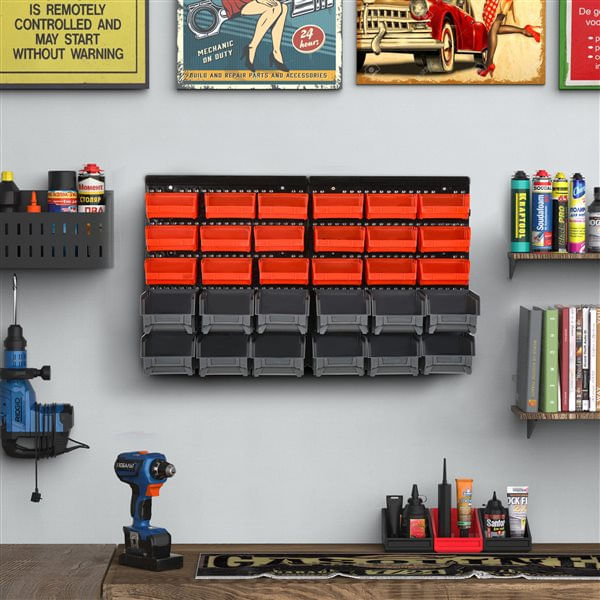 Este práctico organizador de tornillos para taller te ahorrará mucho tiempo en tu día a día. Mantén todos tus productos de ferretería ordenados y no pierdas tiempo buscando tornillos, tuercas o clips que necesites en cada momento. Su panel trasero, del que cuelgan sus 30 cajas de 2 tamaños diferentes, se puede fijar conjuntamente o por separado. Esta característica del organizador de tornillos para pared es perfecta para adaptarse al espacio disponible de tu zona de trabajo. ¡No lo dudes más y organiza tus objetos más pequeños de una vez por todas!