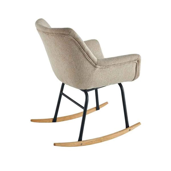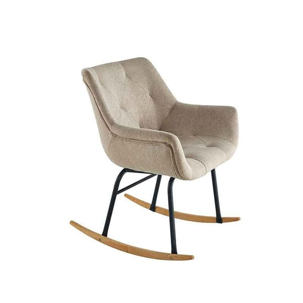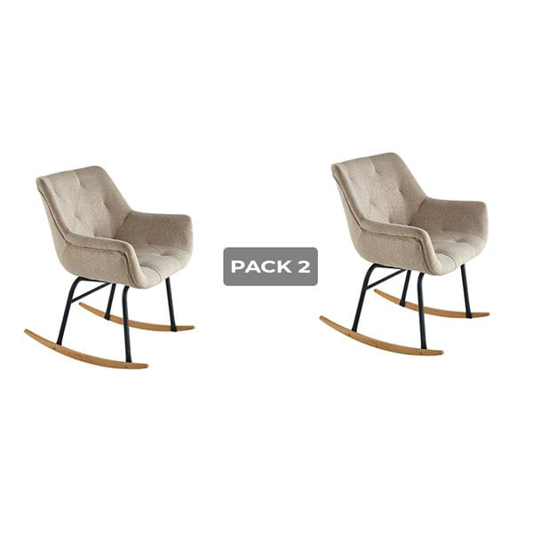Pack 2 butacas mecedoras Darla Balancín en metal y madera Color beige Botones en capitoné Patas metálicas color negro Estilo moderno Fácil limpieza Medidas: 69 x 61x 83 cm (ancho x fondo x alto)
