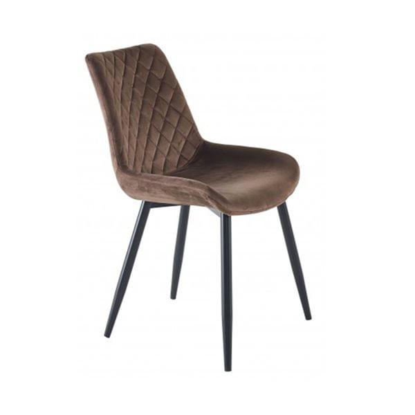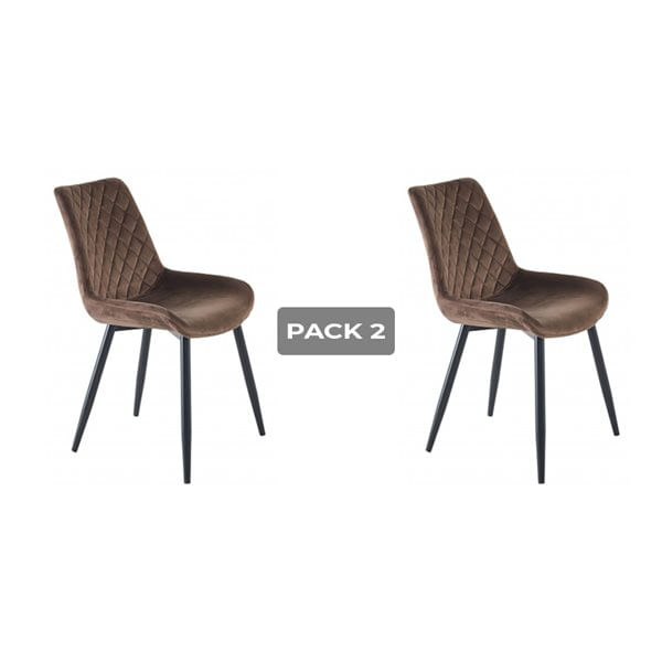 Pack 2 sillas comedor Modelo Swift Tapizado en velvet Color: topo Estructura robusta Diseño especial diamante en el respaldo Asiento y respaldo suaves y acolchados Patas de metal color negro Medidas: 88 cm de alto, 54 cm de ancho, y 59 cm de largo Peso: 5,4 Kg