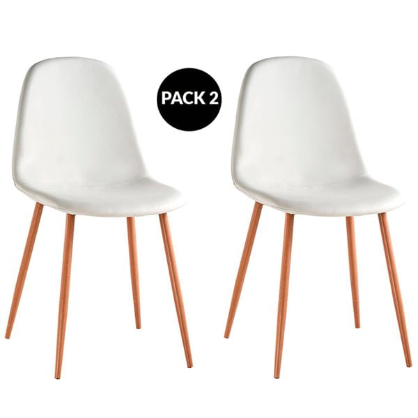 El pack de 2 sillas modelo Craft son unas sillas modernas y sofisticadas que quedarán fenomenales en decoraciones de estilo nórdico. Su estructura cuenta con patas metálicas con acabado en imitación de madera de Oak (roble) y una carcasa en PVC, tapizada en símil de piel. Además, tanto el respaldo como el asiento están acolchados. Gracias a su diseño y estilo estás sillas pueden usarse para mucho más que como sillas de comedor o cocina, puesto que combinan de maravilla como sillas de escritorio, salones, salas de espera, bares y mucho más. Al carecer de reposabrazos, ofrecen una total libertad de movimientos. Limpiarlas es muy fácil gracias a su material.