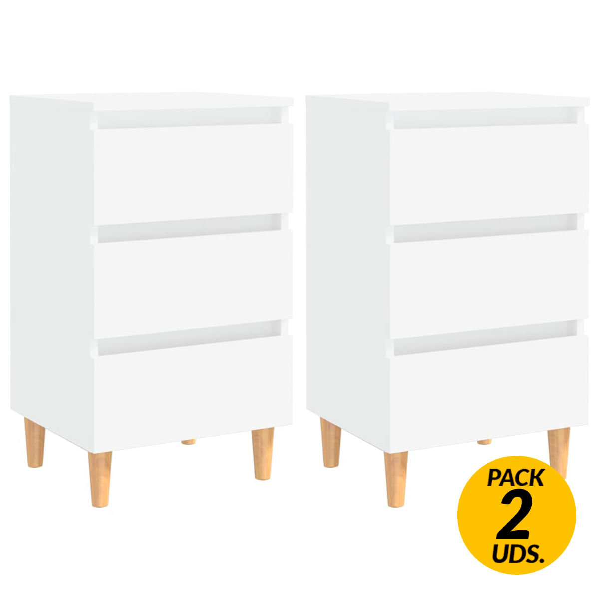 ¿Necesitas un bonito y funcional pack de 2 mesitas de noche para tu dormitorio? Entonces tienes que ver este estupendo pack. Cada mesita cuenta con 3 cajones de amplio espacio de almacenaje para tu ropa interior, pijamas, etc. También cuentan con una amplia encimera donde podrás dejar tu libro de lectura nocturna, móvil, gafas, o una lamparita de mesa. Los tiradores son invisibles, ya que su apertura es tipo uñero, evitando que sobresalga ningún elemento del mueble, dejando un aspecto limpio. Cuentan con 4 patas de madera elevadas que protegen el mueble de la humedad y de la suciedad. Además, son muy fáciles de limpiar, sólo necesitarás pasarle un paño húmedo por encima y estará como nueva. También son muy fáciles de montar gracias a su manual de instrucciones y a todos sus accesorios de montaje. ¡Decora tu dormitorio con este bonito pack de 2 mesitas de noche a un precio irresistible! Sólo en Embargosalobestia.com
