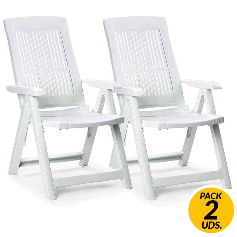 El pack de 2 sillas modelo Tampa de la marca Progarden es ideal para colocar en jardines, patios, zonas de piscina o para llevar a la playa. Están fabricadas en resina con acabado en color blanco y son plegables y multiposición, por lo que podrás llevarlas contigo a todas partes y adaptarlas a tus gustos y preferencias fácilmente. Su respaldo ergonómico y sus reposabrazos las hacen muy confortables y seguras. Son resistentes a las inclemencias meteorológicas y a los rayos UVA. Para limpiarlas bastará con pasar un paño húmedo por su superficie. Gracias a su diseño y a su combinable color encajarán a la perfección con cualquier estilo decorativo.