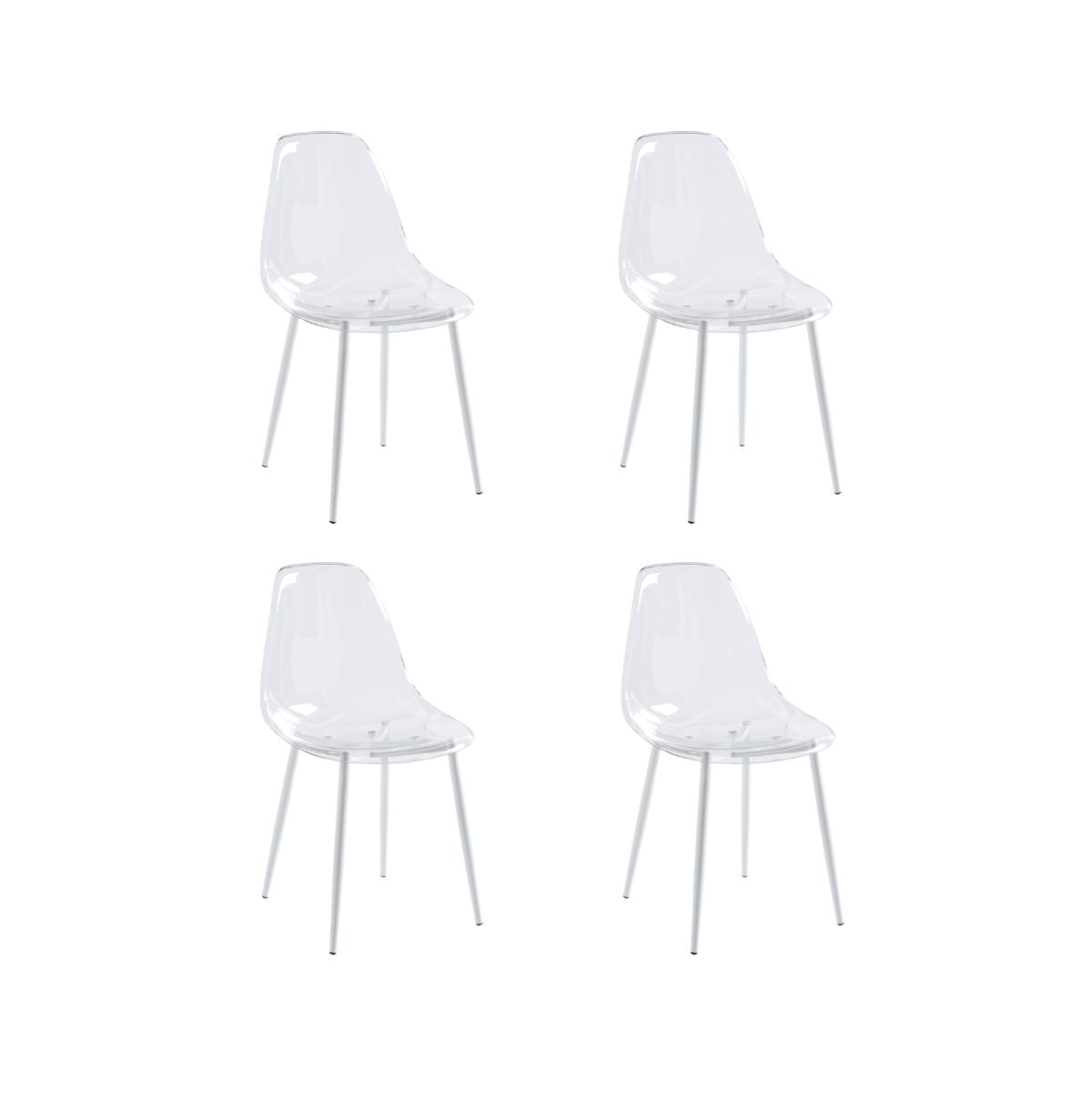 Descubre la originalidad de la silla modelo Telma, una opción versátil y elegante para tu salón, comedor, cocina o incluso terraza. Este pack de 4 sillas es la solución perfecta si buscas completar tu mesa con estilo y funcionalidad. Con este conjunto, tu espacio quedará completamente decorado y armonizado, convirtiéndose en el complemento ideal. Su diseño ergonómico, con respaldo y asiento curvado, se adapta perfectamente a la forma de tu cuerpo, proporcionando comodidad en cada uso. Totalmente transparente y con patas blancas, estas sillas combinan fácilmente con cualquier estilo de decoración y tipo de mesa. Además, están fabricadas con un material de alta calidad y muy fácil de limpiar, lo que las convierte en la opción ideal para hogares con niños pequeños, evitando la necesidad de limpiar y frotar constantemente.