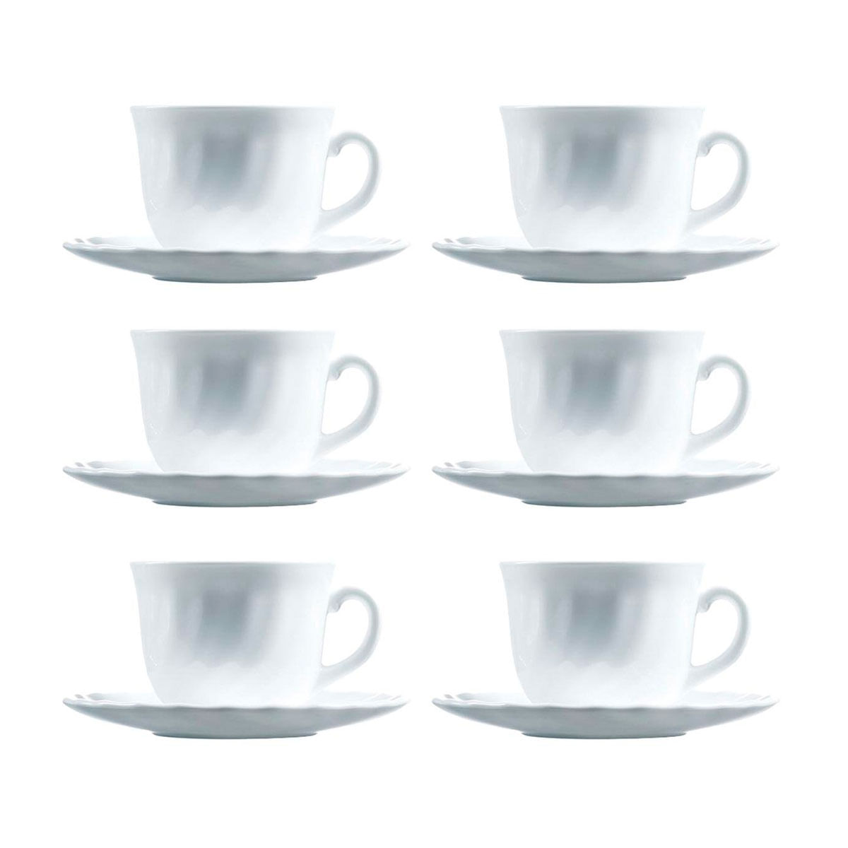 El pack de 6 tazas con plato Trianon de la prestigiosa marca Luminarc redefine la experiencia de disfrutar de tu café o infusión diaria. Fabricadas con materiales de alta calidad, estas tazas están hechas de vidrio opal, que combina la durabilidad del vidrio con la resistencia del opal, asegurando una larga vida útil y un uso sin preocupaciones. Con una capacidad de 22cl cada una, estas tazas son ideales para satisfacer tu dosis diaria de café o té, mientras que sus asas de sujeción proporcionan un agarre cómodo y seguro, permitiéndote disfrutar de tus bebidas favoritas con total comodidad. Su forma redonda y su diseño clásico agregan un toque de sofisticación a cualquier mesa, convirtiéndolas en el complemento perfecto para cualquier ocasión, ya sea para el desayuno, la merienda o una reunión con amigos y familiares. Además, su versatilidad las hace perfectas para el uso diario, siendo aptas para microondas y lavavajillas, lo que facilita su limpieza y mantenimiento sin comprometer su calidad o apariencia. Fabricadas con el compromiso de calidad y excelencia de Luminarc, estas tazas con plato Trianon son un verdadero símbolo de la artesanía francesa. ¡No te las pierdas!