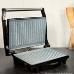Parrilla eléctrica Rock’nGrill 1500 Rapid de Cecotec con revestimiento de piedra RockStone, placa superior adaptable en altura, bandeja recogegrasas y 1500W de potencia. Parrilla eléctrica Contact Grill con 1500 W de potencia. Revestimiento de piedra RockStone que asegura la máxima antiadherencia y la mejor limpieza. Reparto óptimo del calor para un calentamiento rápido y uniforme. Revestimiento ecológico, libre de PTFE, PFOA y otros tóxicos. Bandeja recogegrasas para mejorar el uso y la limpieza. Placas adaptadas con saliente viertegrasas para un uso más cómodo y limpio. Placa superior flotante que se ajusta automáticamente al grosor de los alimentos. - Parrilla eléctrica - Bandeja recogegrasas - Manual de instrucciones - Superficie de cocinado: 24,5 x 17,3 cm - Potencia: 1500W - Placas con saliente viertegrasas - Revestimiento de piedra ecológico - Antiadherente - Certificado CE