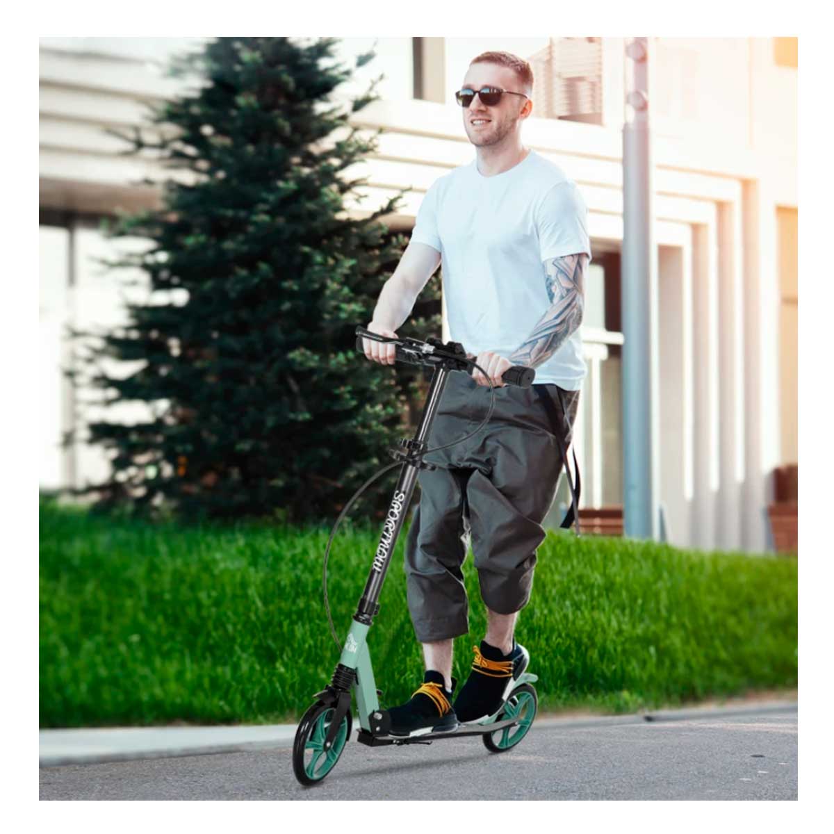 Con este patinete de Homcom podrás moverte por donde quieras con facilidad gracias a sus 2 ruedas de PU extragrandes. Gracias a su diseño plegable, podrás transportarlo y guardarlo fácilmente cuando no lo estés usando. Cuenta con un sistema de doble frenado, uno en el guardabarros y otro en el manillar para una mayor seguridad. El manillar tiene una altura regulable entre 91 y 104 cm, de manera que lo pueda utilizar tanto un adolescente de 14 años o más, como un adulto. Tiene un rodamiento superior ABEC-9 y un amortiguador delantero que absorberá los impactos, aportando una mayor seguridad a la conducción. Es capaz de soportar hasta 100kg de peso, y dispone de una plataforma antideslizante y soporte para mantener el patinete en posición vertical cuando no se esté usando. ¿Te animas a pasearte con este patinete a un precio de chollo?