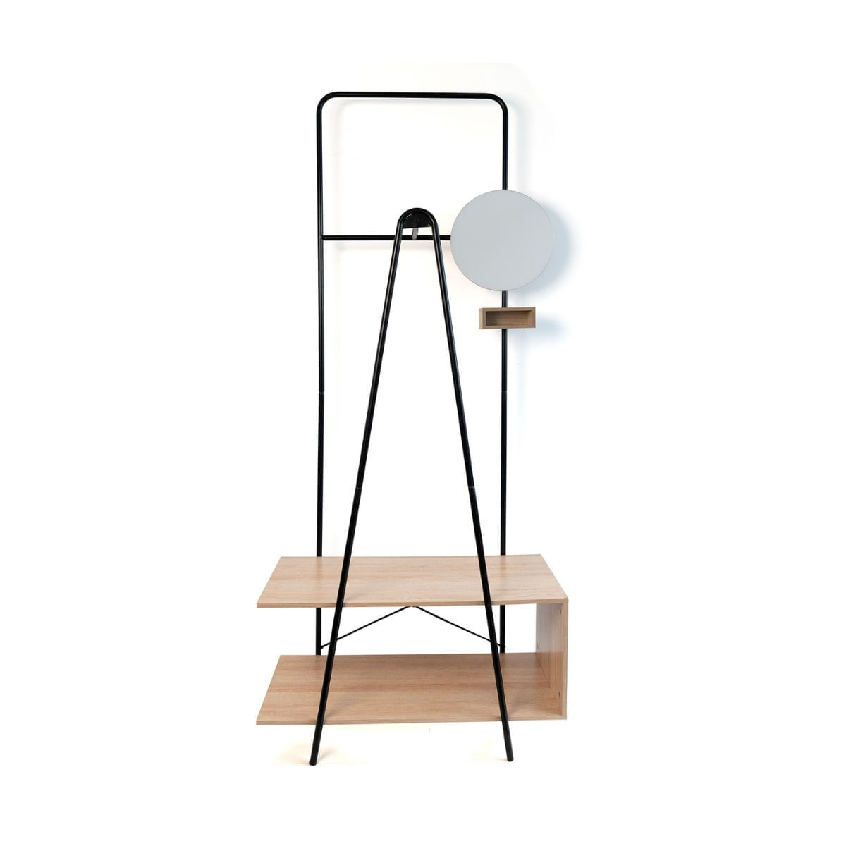 Hazte con este precioso perchero ideal para entradas de MOA, este perchero con espejo integrado dará un toque de lo más encantador a tu hogar. Formado por un estante en forma de C será ideal para organizar tus zapatos, cajas o cualquier pertenencia que necesites ordenar. Consigue un hogar mucho más bonito y organizado con este maravilloso perchero. También cuenta con barra para colgar tus prendas y un pequeño compartimento bajo el espejo para dejar las llaves o tus joyas y tenerlas siempre a mano y localizadas. Fabricado en resistente acero y melamina de la más alta calidad, este perchero resistirá el peso de todas tus prendas sin problema alguno y su aspecto se mantendrá intacto año tras año. Su estilo es de lo más versátil y decorativo por lo que podrás situarlo donde más te guste, en tu vestidor, habitación o hall este perchero con espejo circular se convertirá en el complemento ideal de tu hogar. Hazte ya con el tuyo a un precio irresistible.