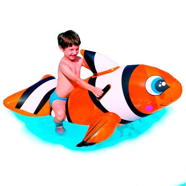 El animal más querido por todos los niños cobra vida sobre el agua con este hinchable de grandes dimensiones. El pez payaso Nemo, con su llamativo color naranja, garantizará el juego durante largas horas en la piscina. Este hinchable tiene el cuerpo de vinilo y una estructura muy segura para que los niños adopten una posición cómoda. Tiene capacidad para una sola persona y cuenta con 2 cámaras de aire para mayor seguridad y estabilidad. El fabricante recomienda su uso a partir de los 3 años de edad, y siempre bajo la vigilancia de un adulto.
