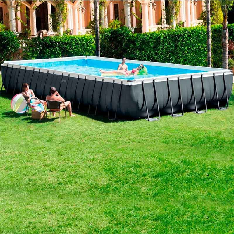 Disfruta como nunca de la zona exterior de tu hogar con la piscina cuadrada desmontable modelo Ultra XTR Frame de la marca Intex. Cuenta con una capacidad de 54368 litros y es ideal para 8 o más personas. Incluye una depuradora de arena de 10500L/h con sistema Hydro Aeration Technology y función de programación. También incluye tapón de vaciado con conexión a manguera de jardín para vaciar el agua de la piscina de forma rápida y segura. Está fabricada con estructura de acero galvanizado, con contrafuertes revestidos de epoxi y lona tricapa de PVC-poliéster muy resistente. Además, incluye escalera de seguridad, tapiz y cobertor.