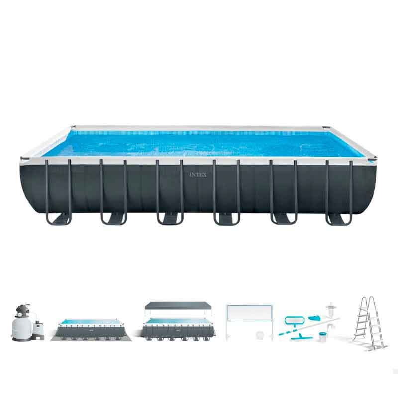 Disfruta de un baño refrescante mientras juegas con tu familia y amigos con la piscina cuadrada desmontable modelo Ultra XTR Frame de la marca Intex que viene con red y pelota de voleibol. La piscina, cuenta con una capacidad de 31805 litros y es ideal para 6 o más personas. Incluye una depuradora de arena de 6000L/h, clorador salino ECO y tapón de vaciado con conexión a manguera de jardín para vaciar el agua de la piscina de forma rápida y segura. Está fabricada con estructura de acero galvanizado, con contrafuertes revestidos de epoxi y lona tricapa de PVC-poliéster muy resistente. Además, incluye escalera de seguridad, tapiz, cobertor, set de voleibol con malla y pelota y un kit de limpieza Deluxe para un correcto y completo mantenimiento.