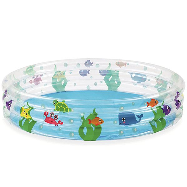 Piscina hinchable con motivos marinos recomendada para niños de a partir de 2 años. Diversión asegurada en el agua para los más pequeños.